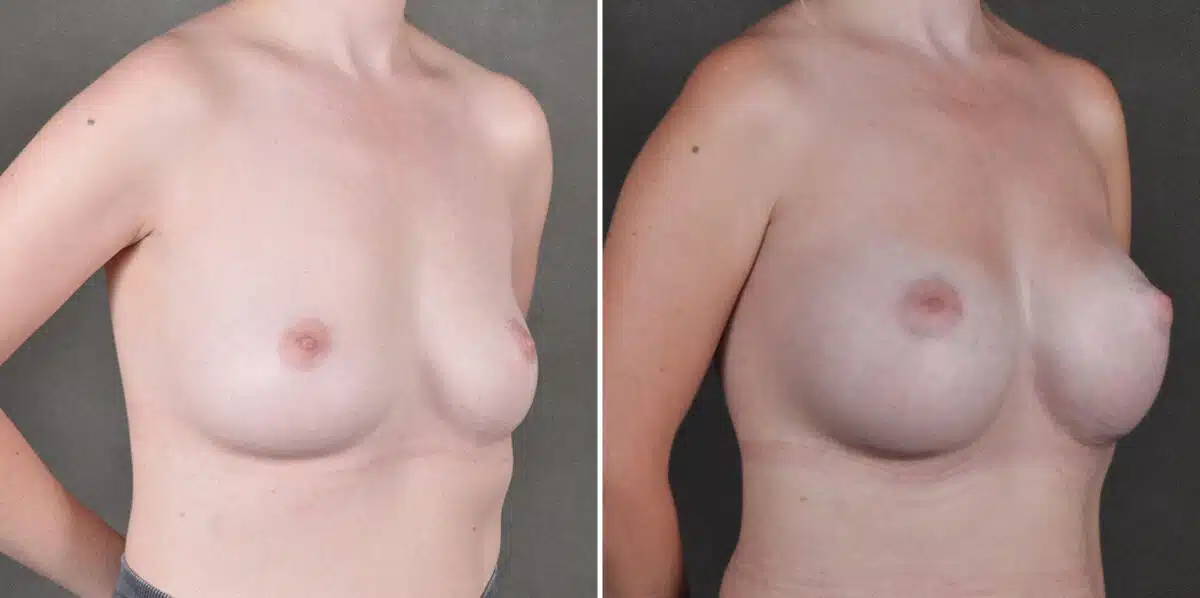 A 38-year-old patient recently underwent breast augmentation with silicone implants. The post-operative photos were taken three months after the procedure, and the results are impressive.