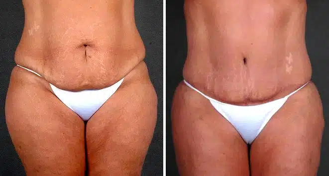 This 49-year-old patient had a breast reduction combined with a Tummy Tuck and liposuction of the hips and thighs. Her post-op photos were taken 9 months after surgery.