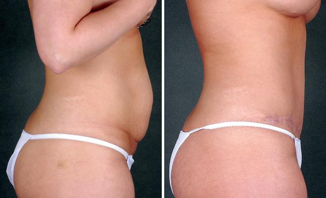 This 29-year-old patient wanted to restore her pre-pregnancy figure after having children. She had a Tummy Tuck (abdominoplasty) in combination with a breast augmentation and breast lift using saline implants. Her post-op photos were taken 9 months after surgery.